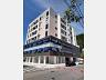 - Fachada com acabamento em pele de vidro e detalhes em pastilha